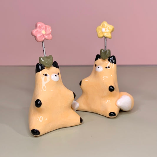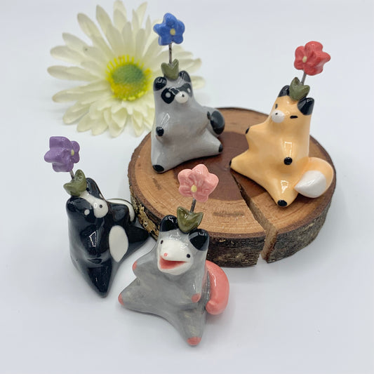 Flower Sprout Raccoon Fox Skunk Possum Animal Ceramic Figurine