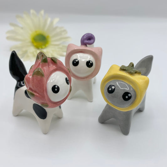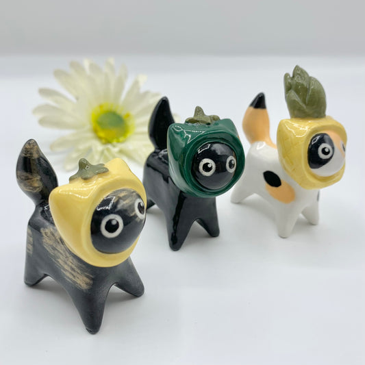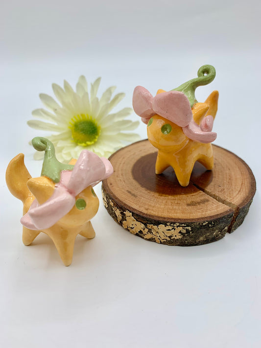 Flower Kitty Ceramic Figurine- Yellow Tulip