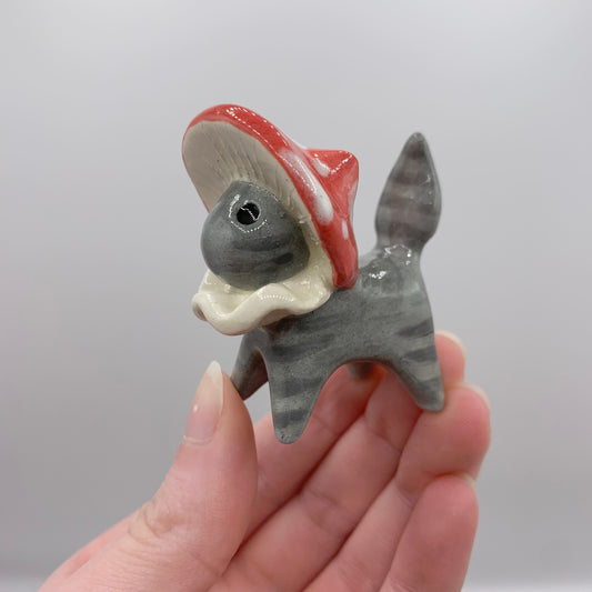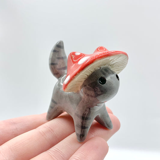 Sold outGrey Mushroom Kitty Ceramic Figurine