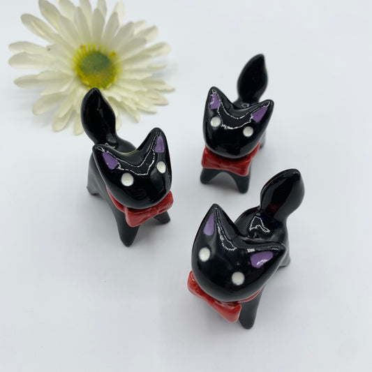 Halloween Set Kitty Cat Ceramic Figurine with Magnetic Attachments