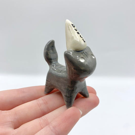 Grey Tabby Dunce Kitty Ceramic Figurine
