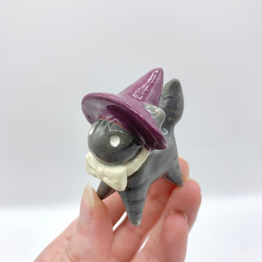 Sold outGrey Springtime Witch Ceramic Cat