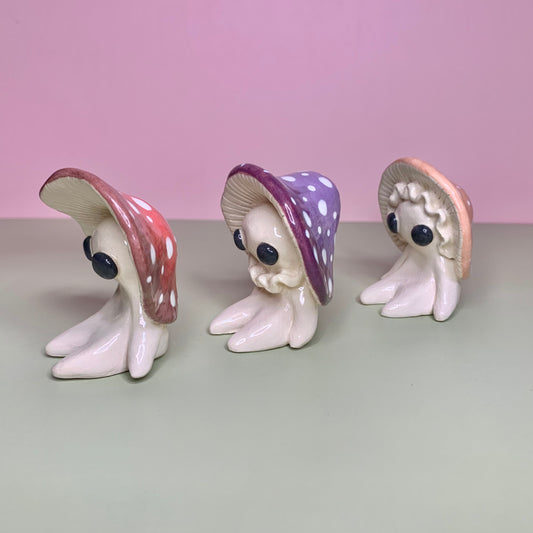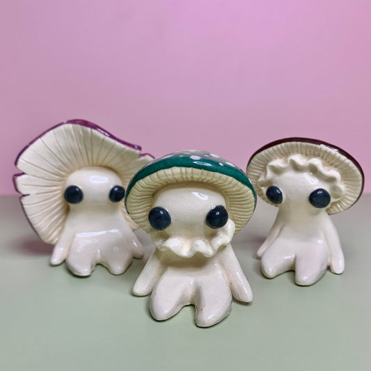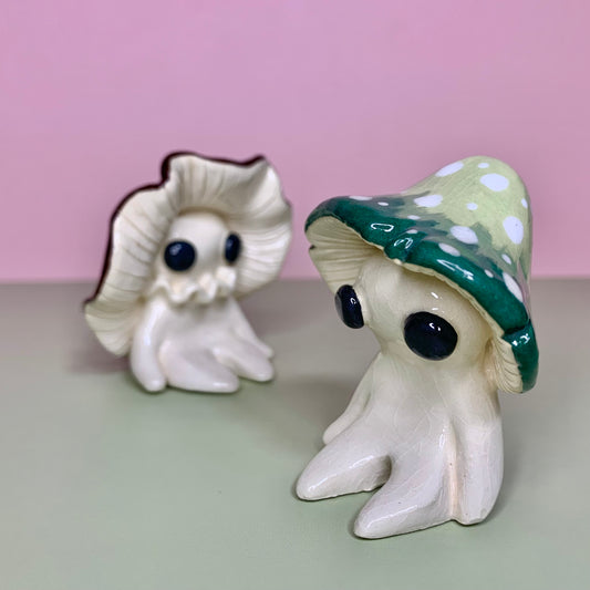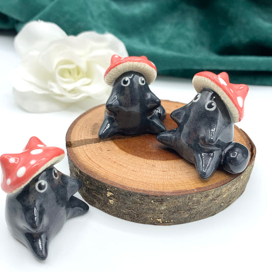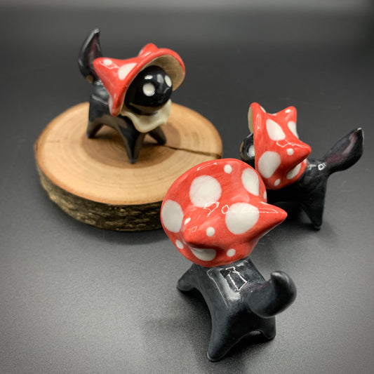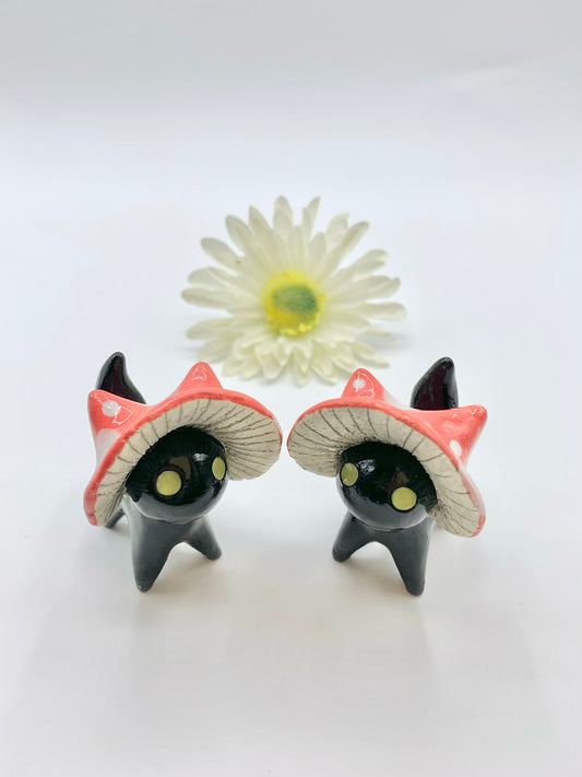 Mushroom Kitty Ceramic Figurine- Black Cat