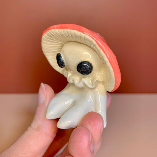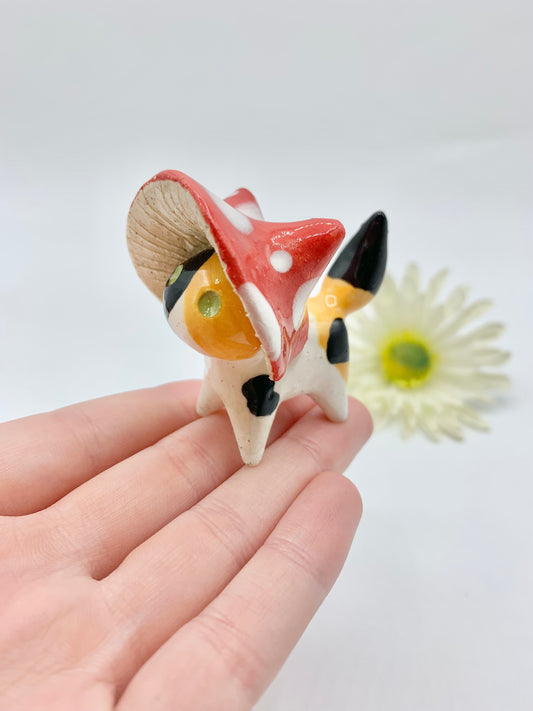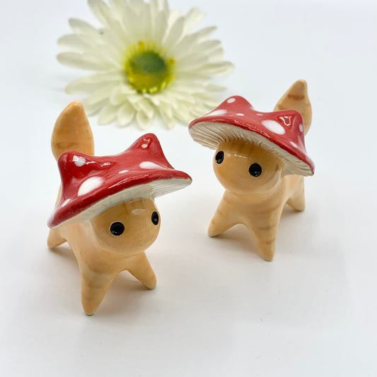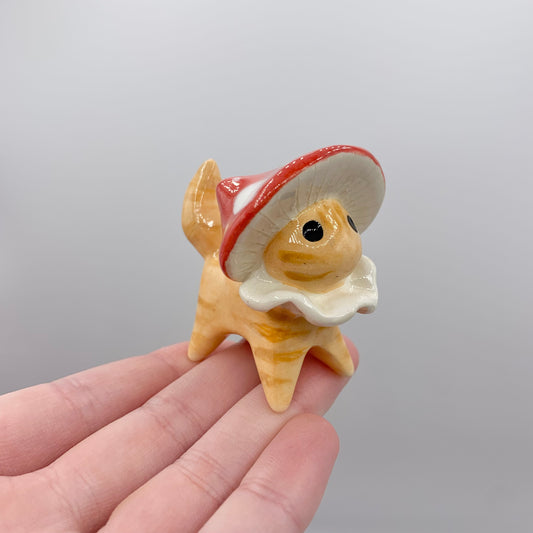 Orange Tabby Mushroom Kitty Ceramic Figurine