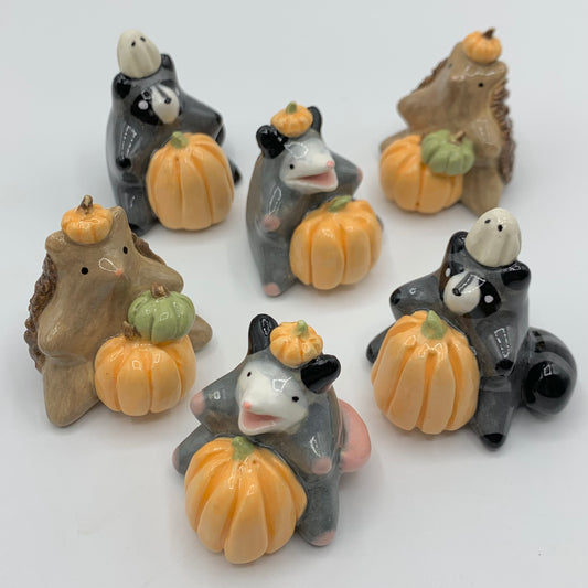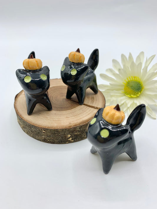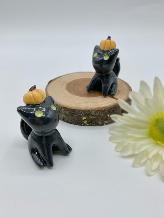 Pumpkin Kitty Ceramic Figurine- Sitting Cat