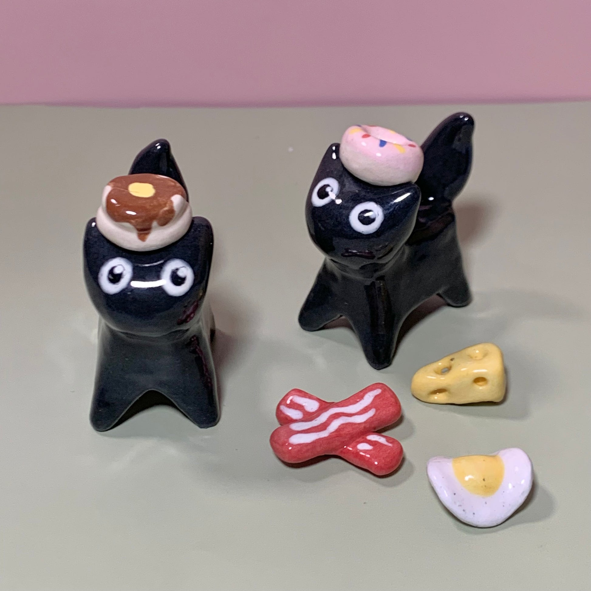 Breakfast Set Kitty Cat Ceramic Figurine with Magnetic Attachments