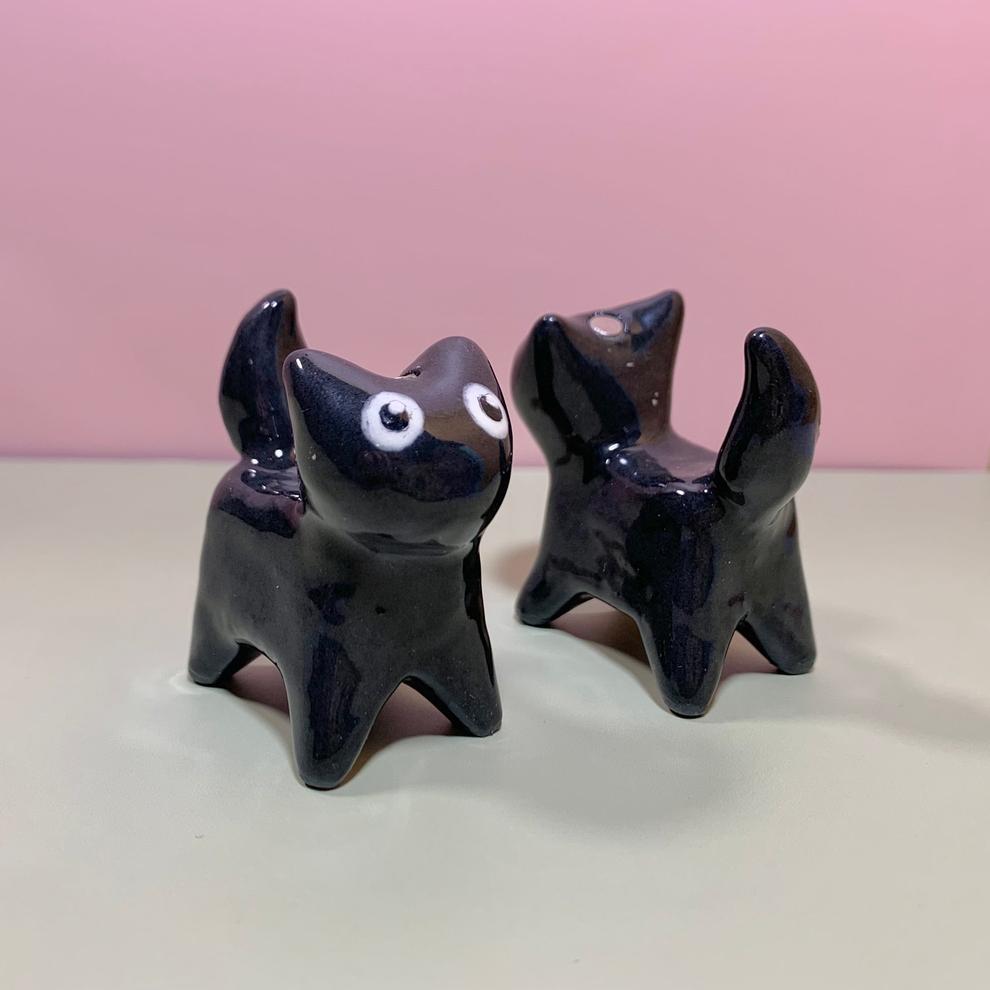 ❤️These cats were hand molded from a white clay, painted with underglazes, and placed in the kiln to bisque fire. Once bisqued the figurine is brushed with a clear glaze to accentuate texture, and then back into the kiln it goes so that the glaze turns glossy and colors embolden