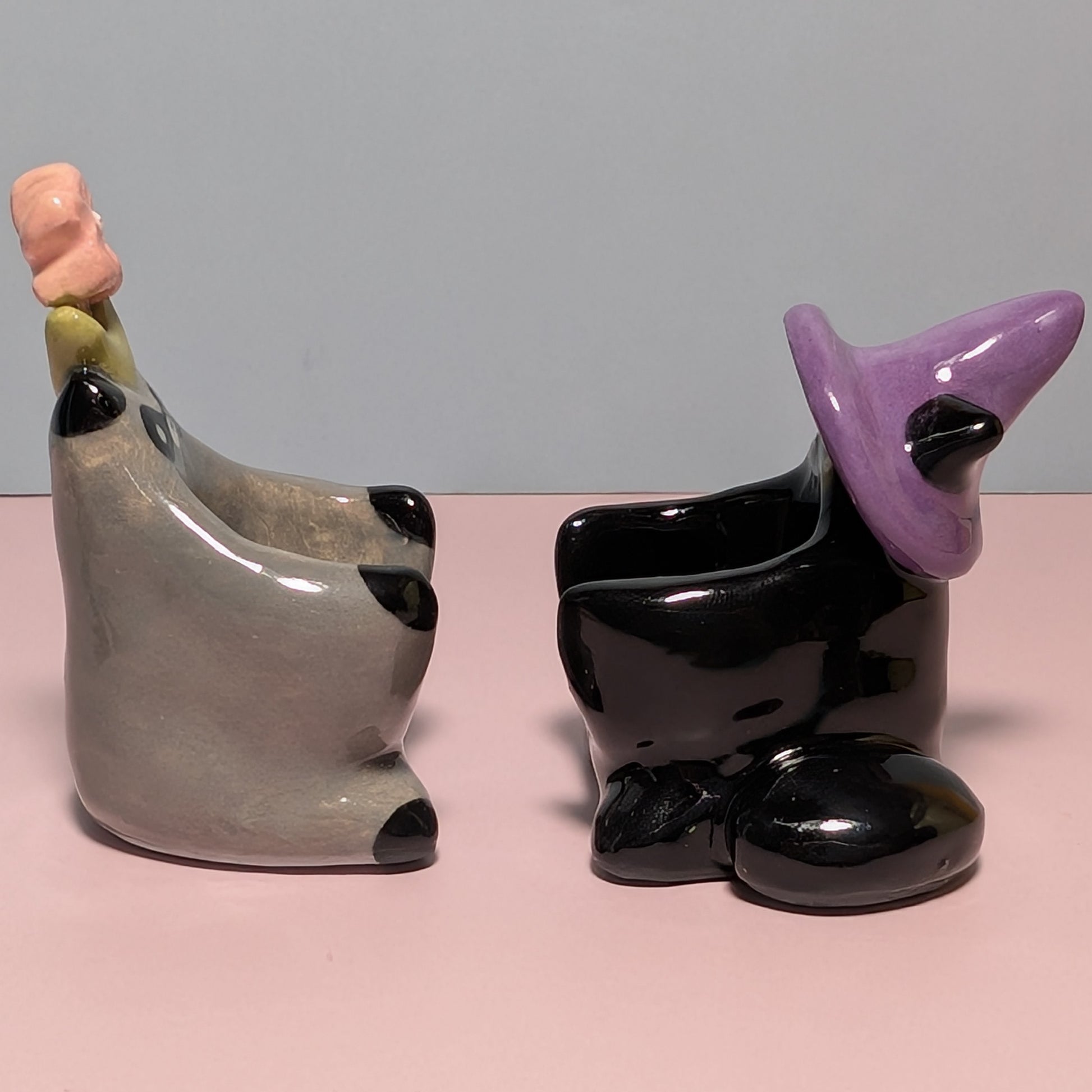 ❤️These figurines were hand molded from a speckled white clay, painted with underglazes, and placed in the kiln to bisque fire. Once bisqued the figurine is brushed with a crackling clear glaze to accentuate texture, and then back into the kiln it goes so that the glaze turns glossy and colors embolden!