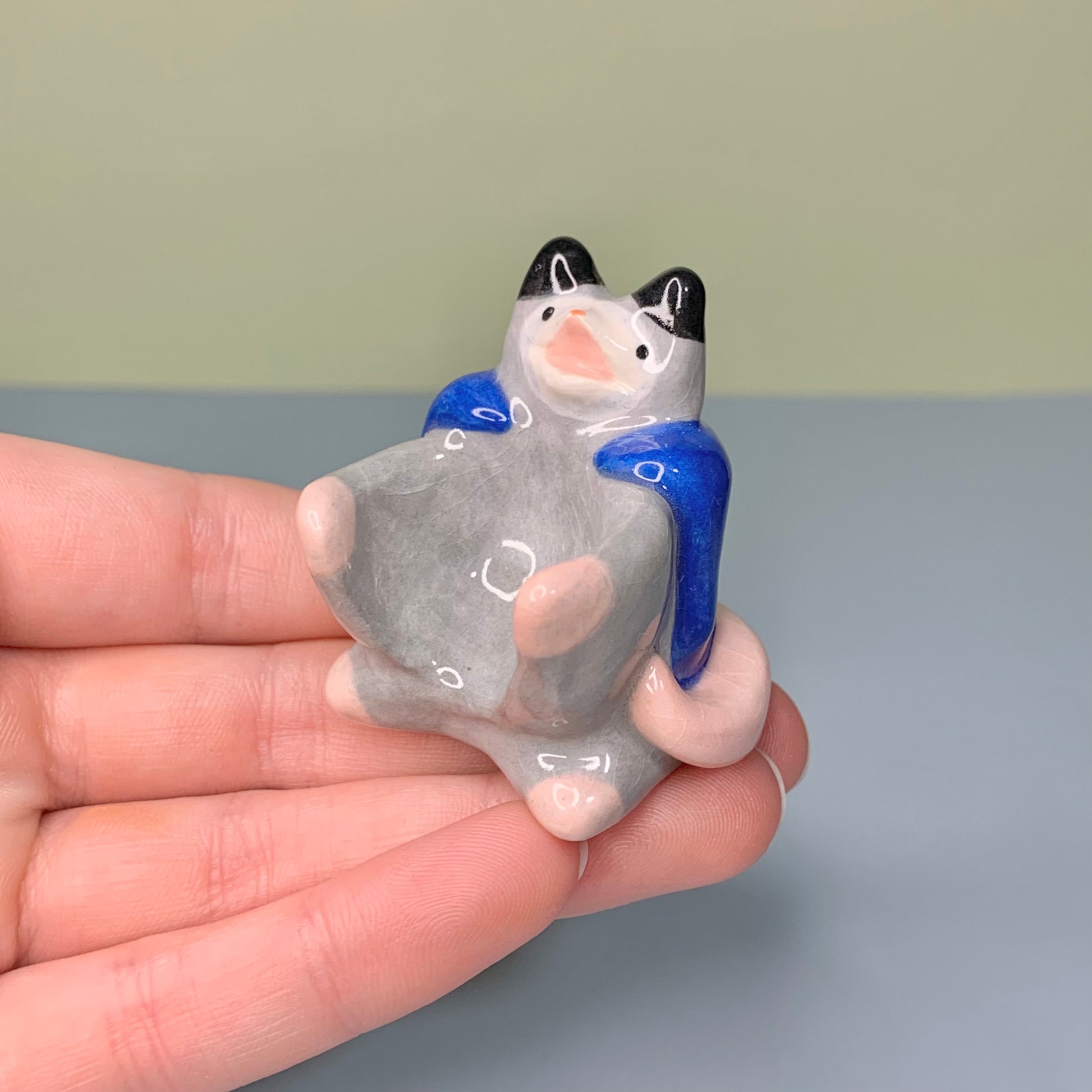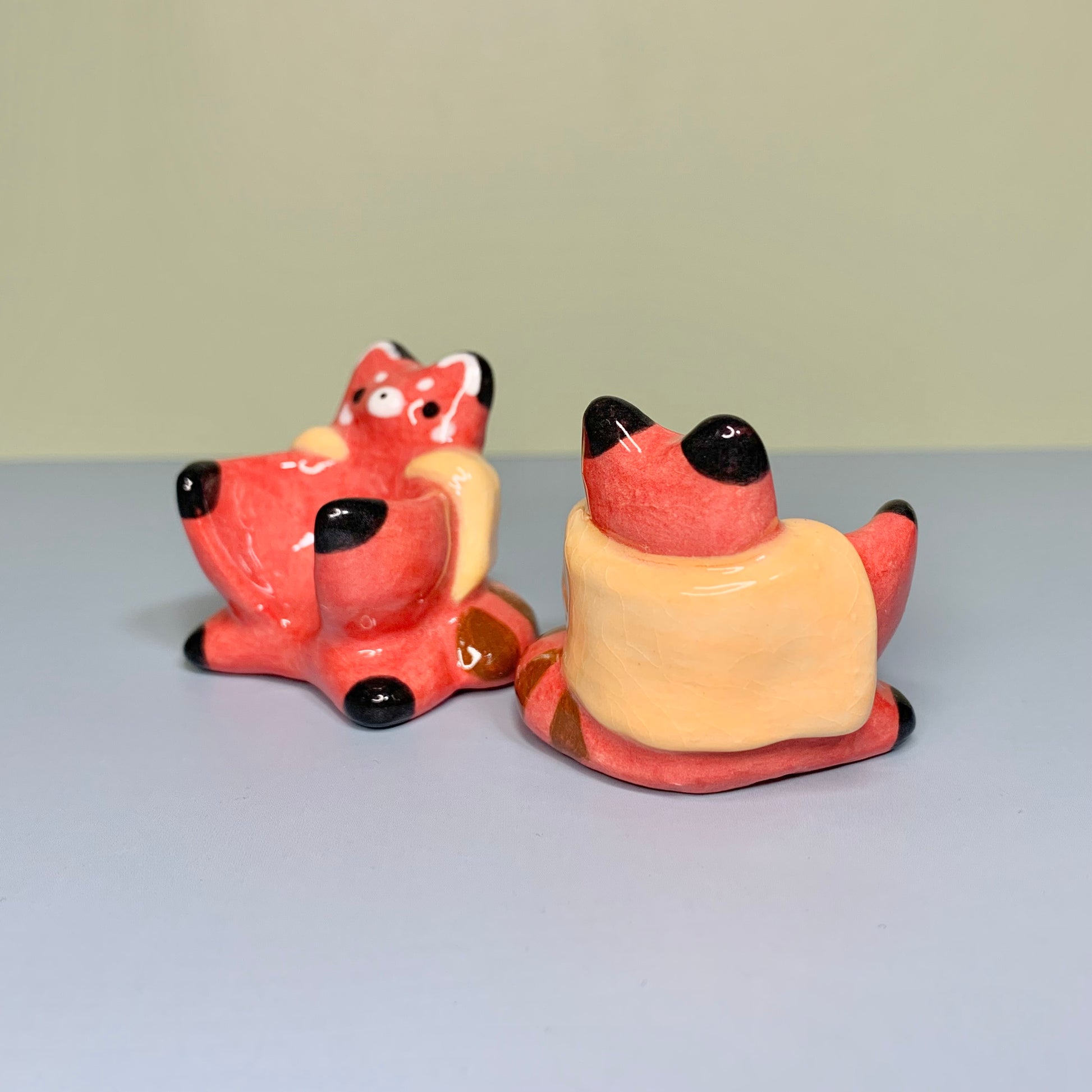 ❤️These figurines were hand molded from a speckled white clay, painted with underglazes, and placed in the kiln to bisque fire. Once bisqued the figurine is brushed with a crackling clear glaze to accentuate texture, and then back into the kiln it goes so that the glaze turns glossy and colors embolden!