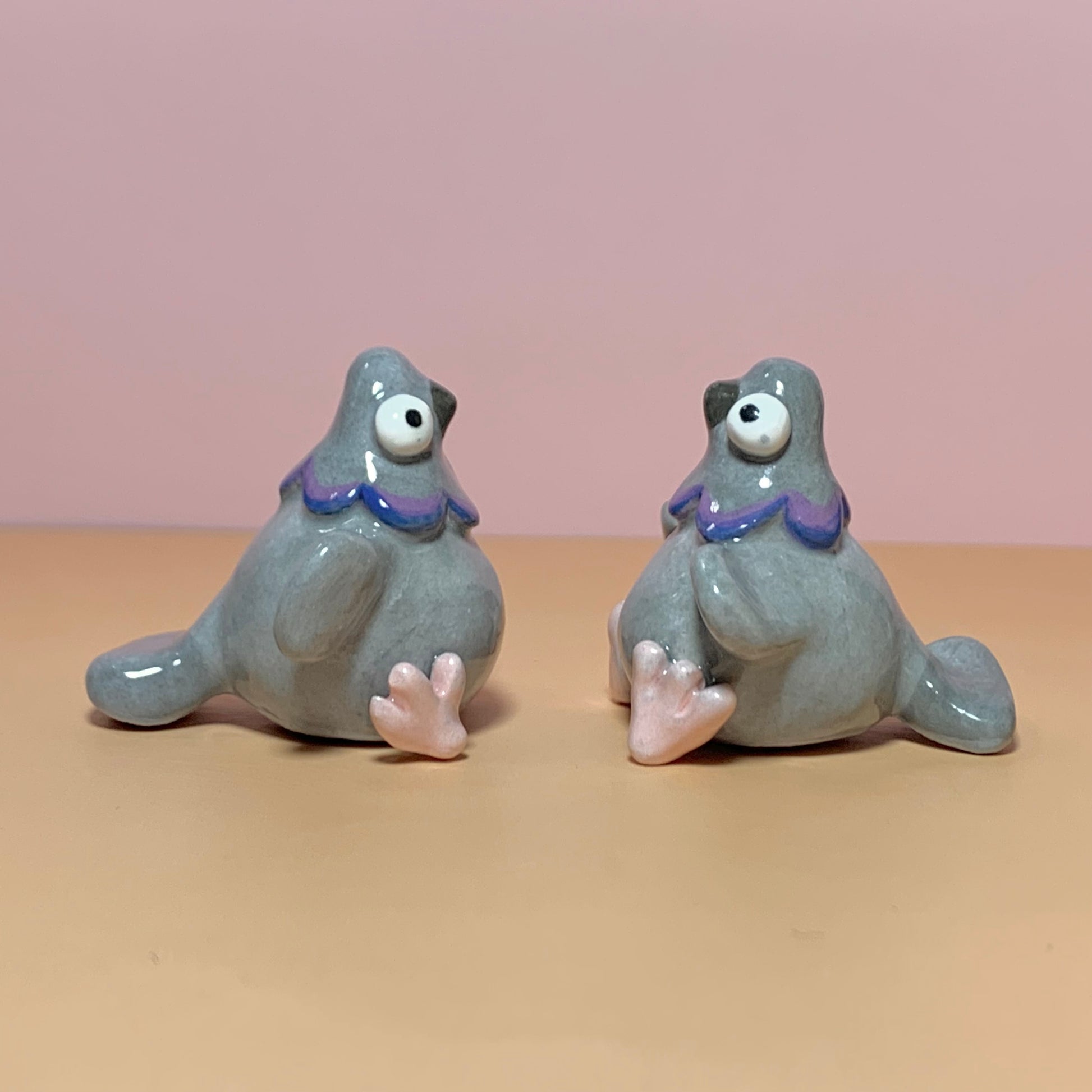 ❤️These figurines were hand molded from a white clay, painted with underglazes, and placed in the kiln to bisque fire. Once bisqued the figurine is brushed with a clear glaze to accentuate texture, and then back into the kiln it goes so that the glaze turns glossy and colors embolden!